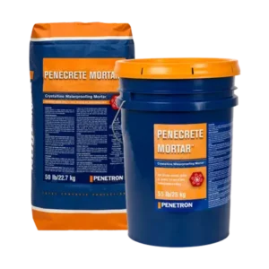 PENECRETE MORTAR® se sastoji od Portland cementa, posebno tretiranog kvarcnog peska i smeše aktivnih hemikalija. Aktivne hemikalije reaguju s vlagom i nusproizvodima hidratacije cementa i otpočinju katalitičku reakciju koja formira nerastvorive formacije kristala. Ove formacije kristala narastaju u prisustvu vlage, zatvaraju kapilarni trakt betona i manje prsline od skupljanja i na taj način obezbeđuju vodonepropusnost. Hemijska reakcija počinje odmah po zamešavanju praha s vodom, i potrebno je nekoliko dana da se u potpunosti zatvore kapilari, što zavisi od ambijentalne temperature i uslova okruženja.